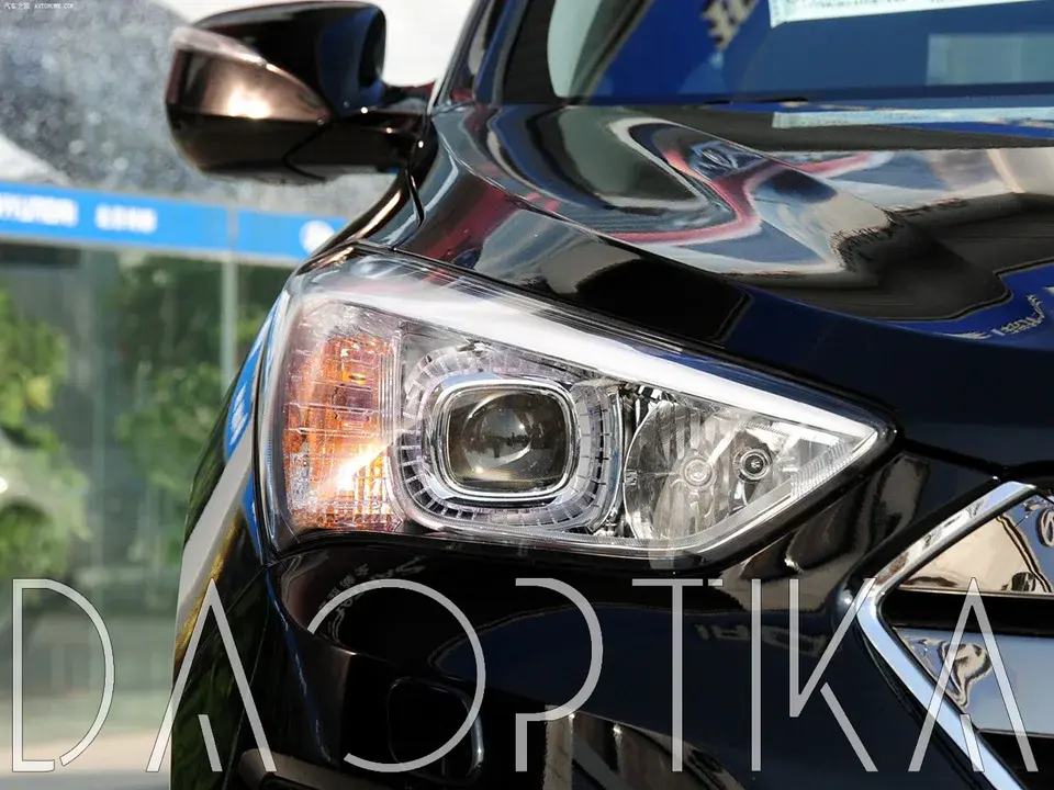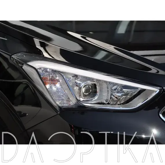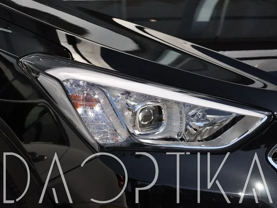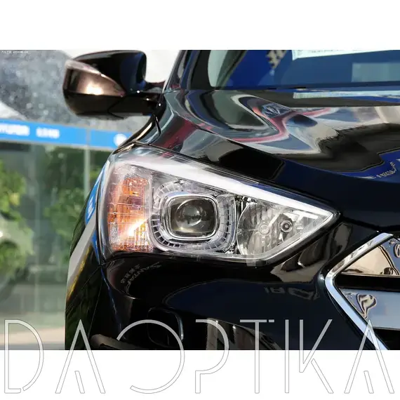Стекло правой фары из оптического поликарбоната с защитным лаком для замены оригинального стекола фары на Hyundai Santa Fe 2012-2016 DM III