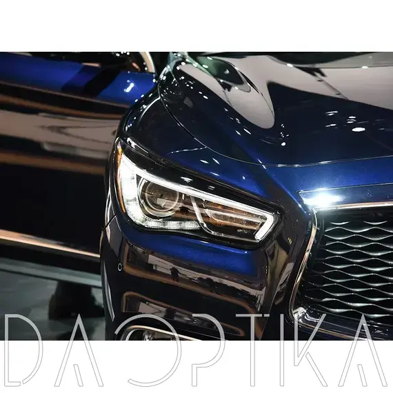 Стекло правой фары из оптического поликарбоната с защитным лаком для замены оригинального стекола фары на Infiniti QX60 2016-2020 L50 [рестайлинг]