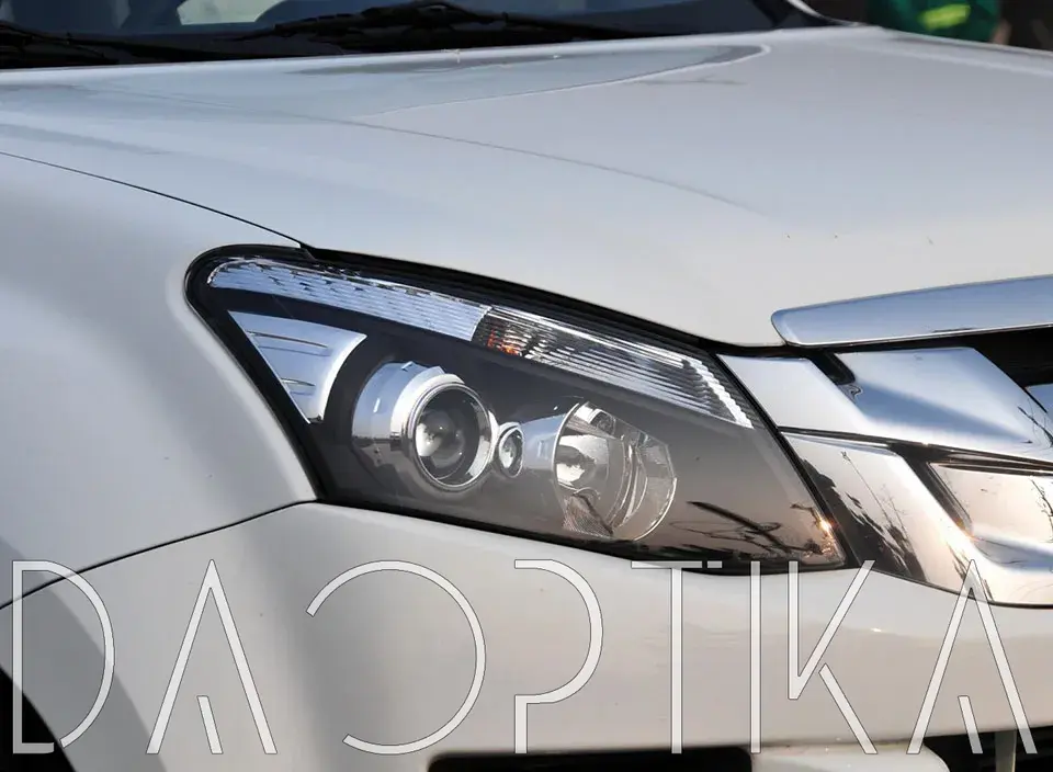 Стекло правой фары из оптического поликарбоната с защитным лаком для замены оригинального стекола фары на Isuzu D-Max 2012-2018 2 поколение