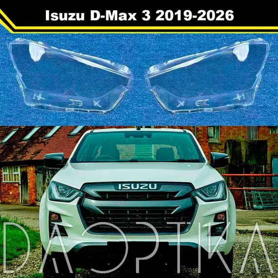 Стекло правой фары из оптического поликарбоната с защитным лаком для замены оригинального стекола фары на Isuzu D-Max 2019-2026 3 поколение