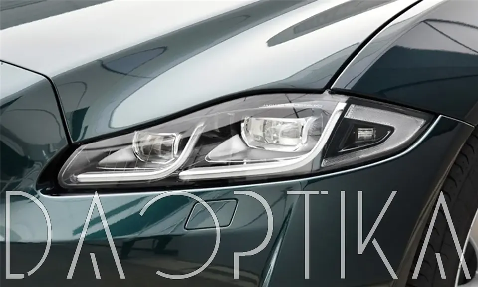 Стекло правой фары из оптического поликарбоната с защитным лаком для замены оригинального стекола фары на Jaguar XJ 2009-2019 X351