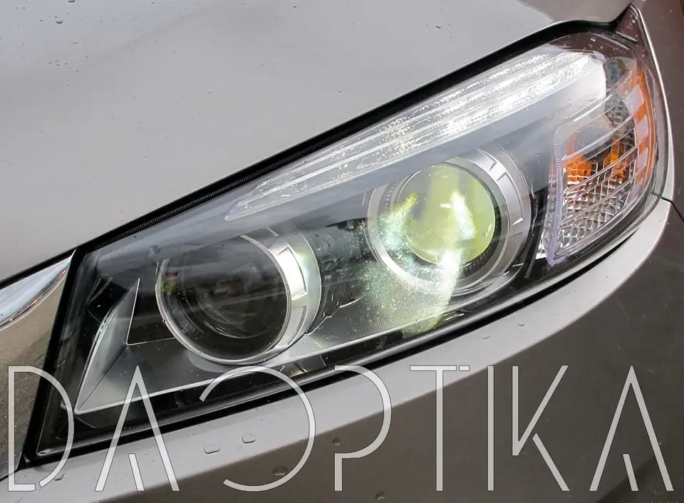 Стекло правой фары из оптического поликарбоната с защитным лаком для замены оригинального стекола фары на Kia Sorento Prime 2014-2017 3 поколение