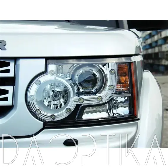 Стекло правой фары из оптического поликарбоната с защитным лаком для замены оригинального стекола фары на Land Rover Discovery 2009-2013 4 поколение