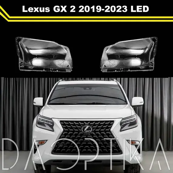 Стекло правой фары из оптического поликарбоната с защитным лаком для замены оригинального стекола фары на Lexus GX 2019-2023 J150 [2-й рестайлинг]