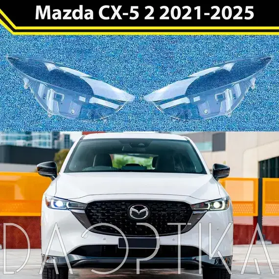Стекло правой фары из оптического поликарбоната с защитным лаком для замены оригинального стекола фары на Mazda CX-5 2021-2025 2 поколение [рестайлинг]