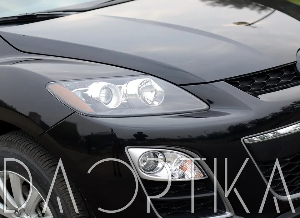 Стекло правой фары из оптического поликарбоната с защитным лаком для замены оригинального стекола фары на Mazda CX-7 2006-2012 1 поколение