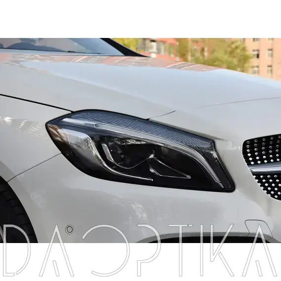 Стекло правой фары из оптического поликарбоната с защитным лаком для замены оригинального стекола фары на Mercedes-Benz A-Class 2015-2018 W176 [рестайлинг]