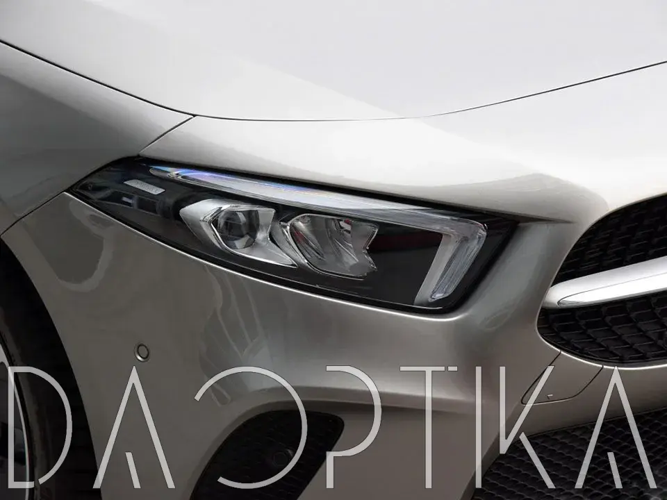 Стекло правой фары из оптического поликарбоната с защитным лаком для замены оригинального стекола фары на Mercedes-Benz A-Class 2018-2022 W177/V177