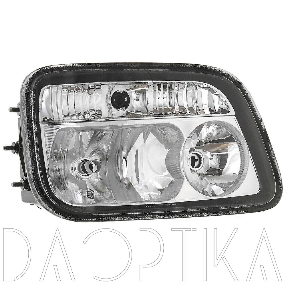 Стекло правой фары из оптического поликарбоната с защитным лаком для замены оригинального стекола фары на Mercedes-Benz Actros 2003-2008 MP2