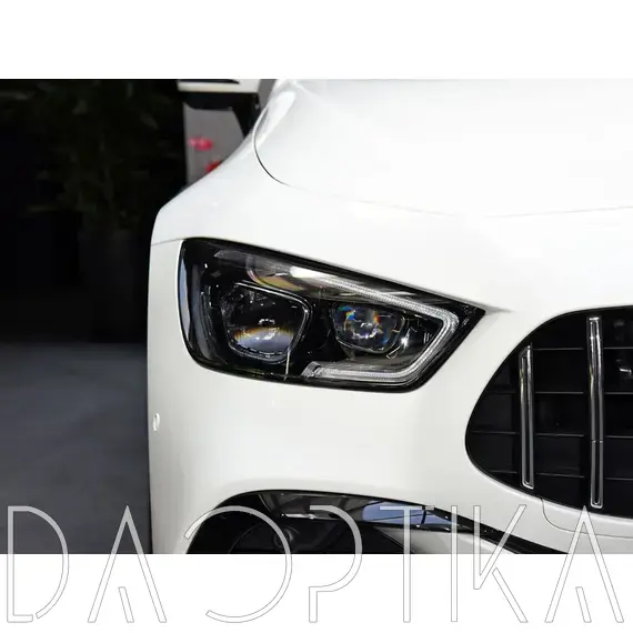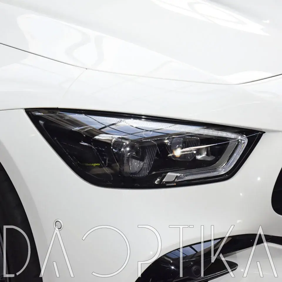 Стекло правой фары из оптического поликарбоната с защитным лаком для замены оригинального стекола фары на Mercedes-Benz AMG GT 2017-2025 C190 [рестайлинг]