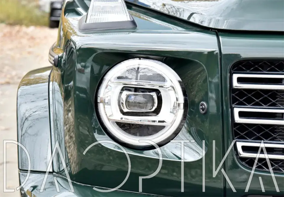 Стекло правой фары из оптического поликарбоната с защитным лаком для замены оригинального стекола фары на Mercedes-Benz G-Class 2018-2024 W463 3 поколение