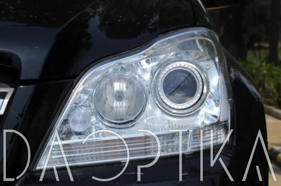 Стекло правой фары из оптического поликарбоната с защитным лаком для замены оригинального стекола фары на Mercedes-Benz GL-Class 2006-2012 X164