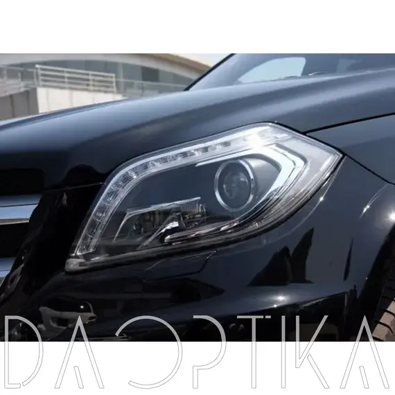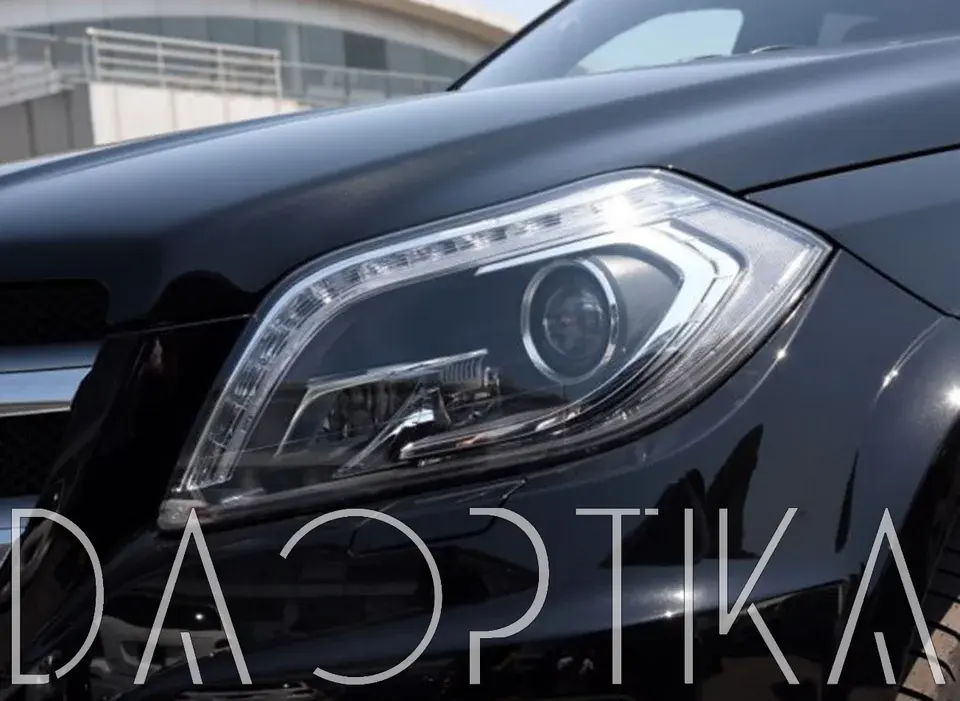 Стекло правой фары из оптического поликарбоната с защитным лаком для замены оригинального стекола фары на Mercedes-Benz GL-Class 2012-2016 X166