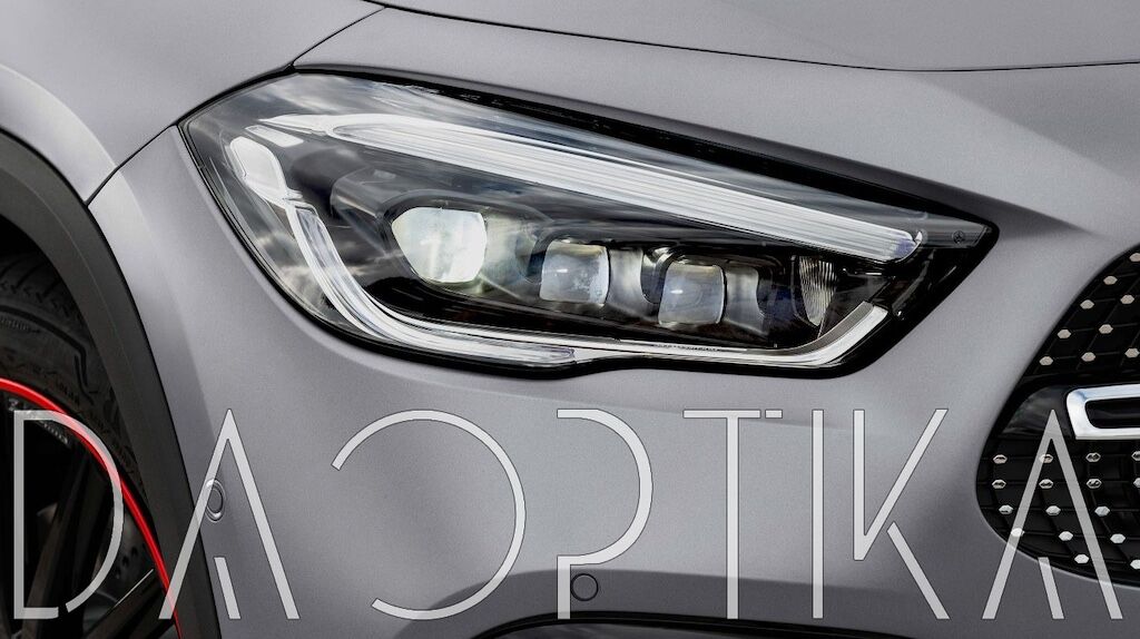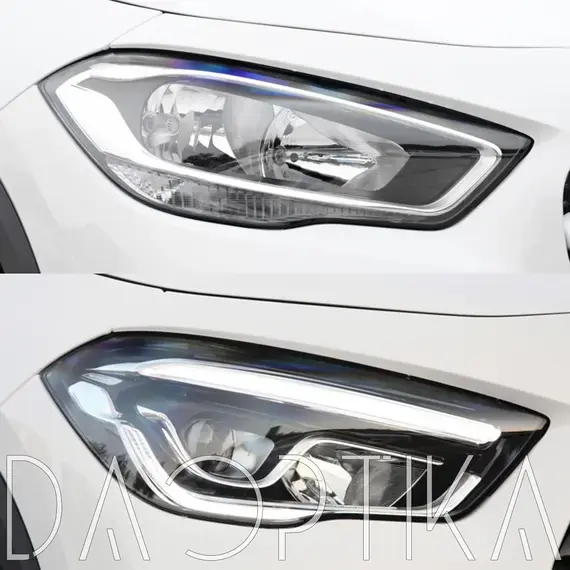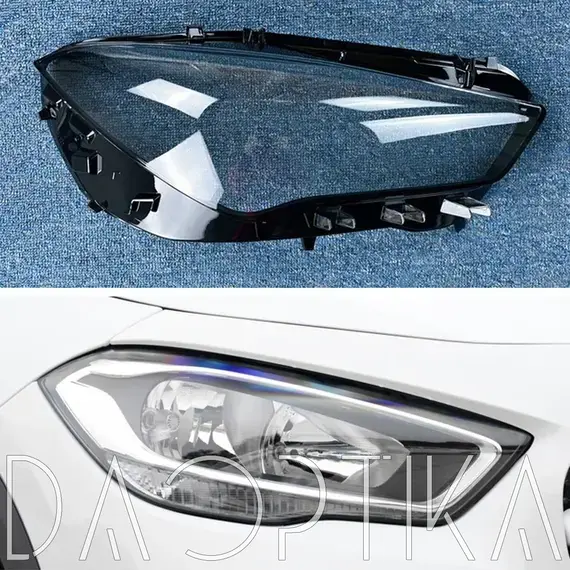 Стекло правой фары из оптического поликарбоната с защитным лаком для замены оригинального стекола фары на Mercedes-Benz GLA-Class 2020-2023 H247
