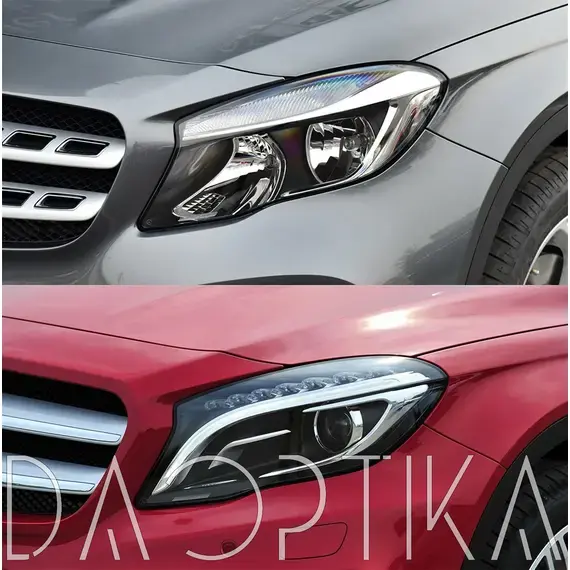 Стекло правой фары из оптического поликарбоната с защитным лаком для замены оригинального стекола фары на Mercedes-Benz GLA-Class 2013-2017 X156