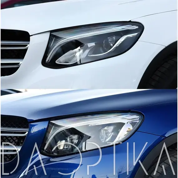 Стекло правой фары из оптического поликарбоната с защитным лаком для замены оригинального стекола фары на Mercedes-Benz GLC-Class 2015-2019 X253