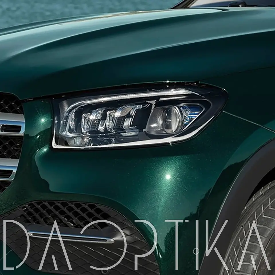 Стекло правой фары из оптического поликарбоната с защитным лаком для замены оригинального стекола фары на Mercedes-Benz GLS-Class 2019-2023 X167