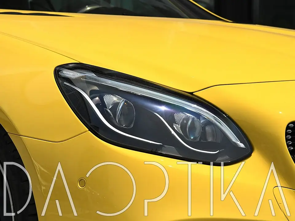Стекло правой фары из оптического поликарбоната с защитным лаком для замены оригинального стекола фары на Mercedes-Benz SLC-Class 2016-2020 R172