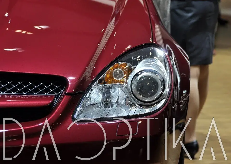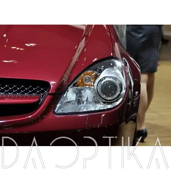 Стекло правой фары из оптического поликарбоната с защитным лаком для замены оригинального стекола фары на Mercedes-Benz SLK-Class 2004-2011 R171