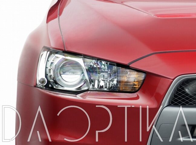 Стекло правой фары из оптического поликарбоната с защитным лаком для замены оригинального стекола фары на Mitsubishi Lancer 2007-2017 X