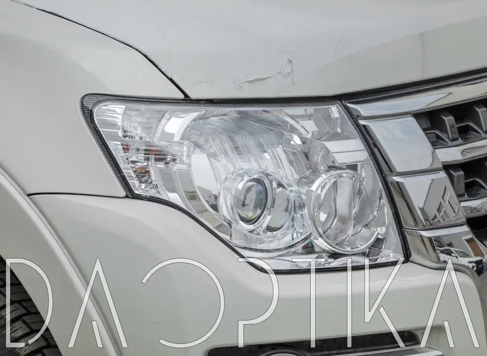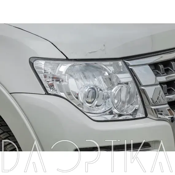 Стекло правой фары из оптического поликарбоната с защитным лаком для замены оригинального стекола фары на Mitsubishi Pajero 2006-2021 4 поколение