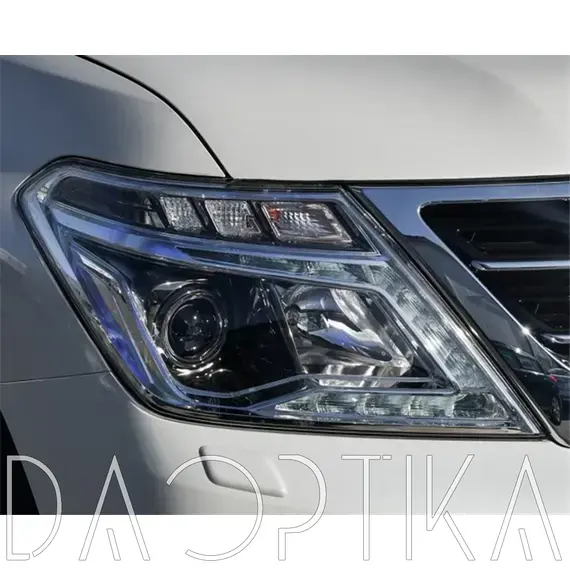 Стекло правой фары из оптического поликарбоната с защитным лаком для замены оригинального стекола фары на Nissan Patrol 2010-2019 Y62