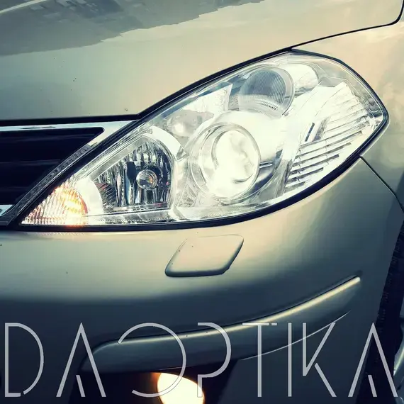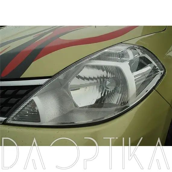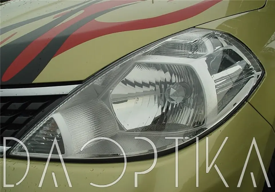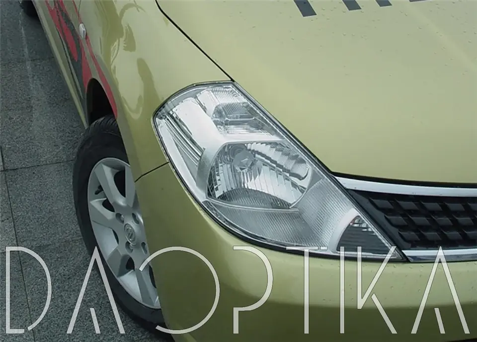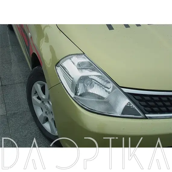 Стекло правой фары из оптического поликарбоната с защитным лаком для замены оригинального стекола фары на Nissan Tiida 2004-2013 C11 1 поколение