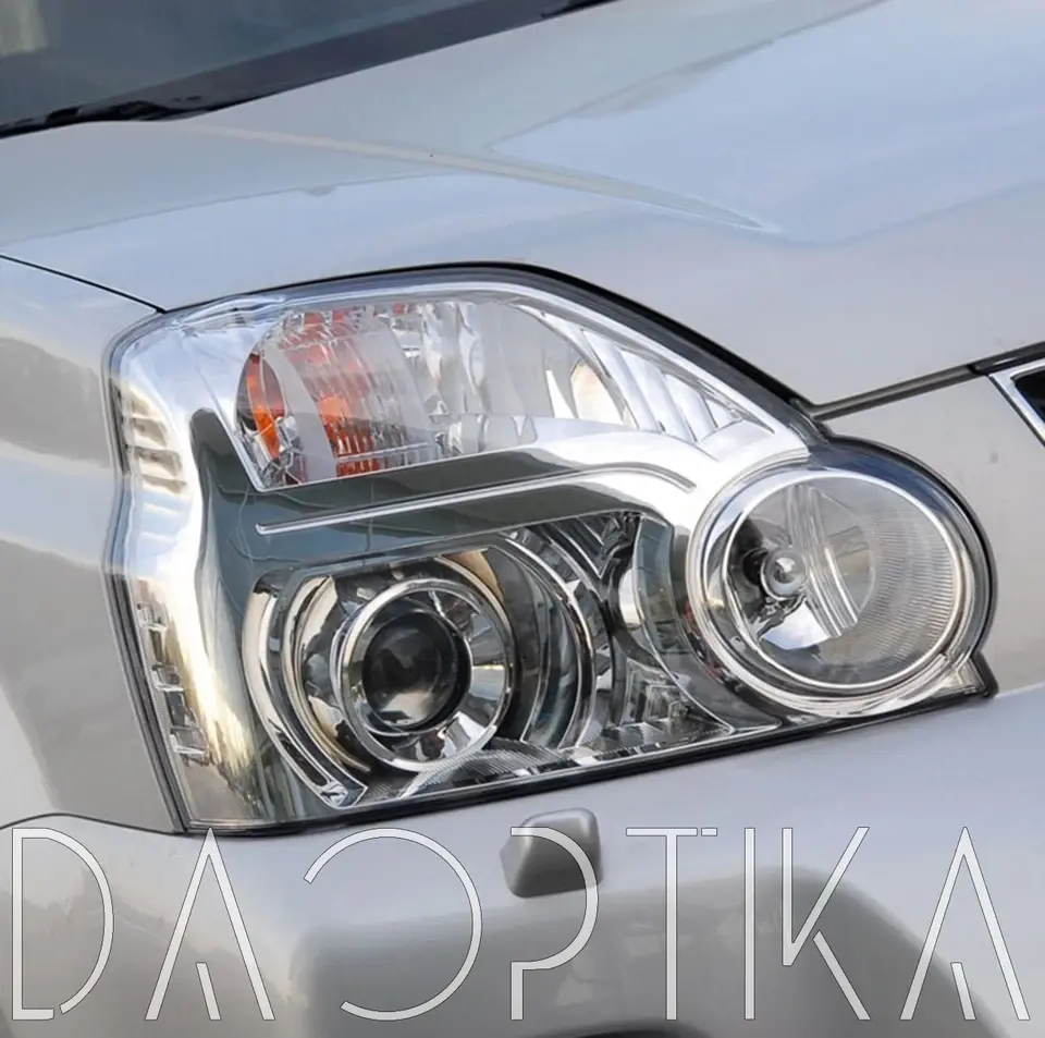 Стекло правой фары из оптического поликарбоната с защитным лаком для замены оригинального стекола фары на Nissan X-Trail 2007-2011 T31
