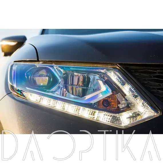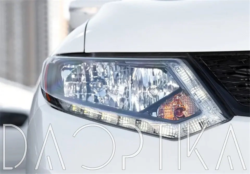 Стекло правой фары из оптического поликарбоната с защитным лаком для замены оригинального стекола фары на Nissan X-Trail 2013-2019 T32