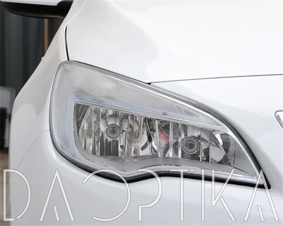 Стекло правой фары из оптического поликарбоната с защитным лаком для замены оригинального стекола фары на Opel Astra 2009-2018 J