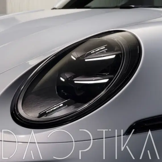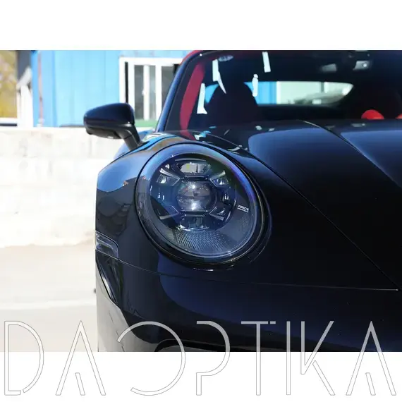 Стекло правой фары из оптического поликарбоната с защитным лаком для замены оригинального стекола фары на Porsche 911 2018-2026 992