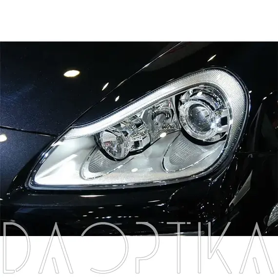 Стекло правой фары из оптического поликарбоната с защитным лаком для замены оригинального стекола фары на Porsche Cayenne 2007-2010 957 [рестайлинг]