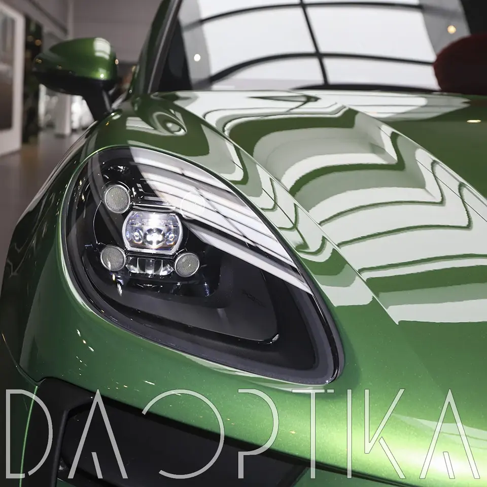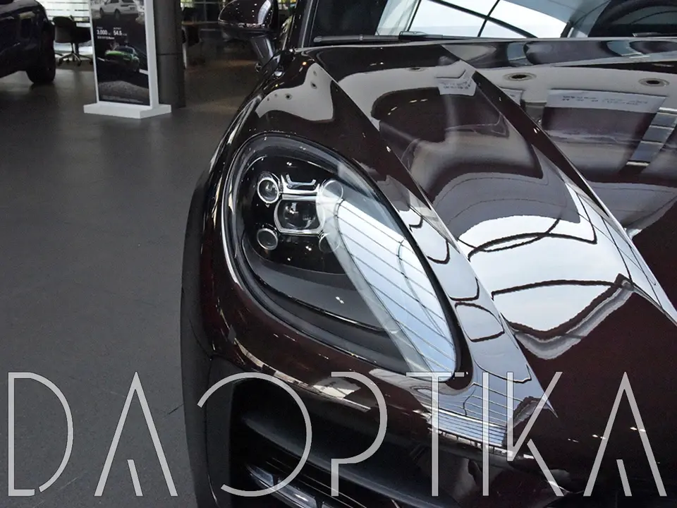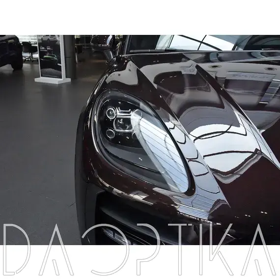 Стекло правой фары из оптического поликарбоната с защитным лаком для замены оригинального стекола фары на Porsche Macan 2018-2024 1 поколение [рестайлинг]