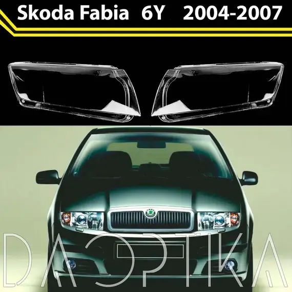 Стекло правой фары из оптического поликарбоната с защитным лаком для замены оригинального стекола фары на Skoda Fabia 2004-2007 6Y [рестайлинг]