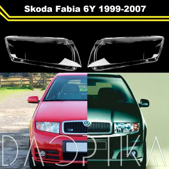 Стекло правой фары из оптического поликарбоната с защитным лаком для замены оригинального стекола фары на Skoda Fabia 1999-2007 6Y