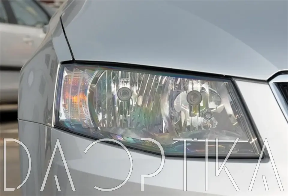 Стекло правой фары из оптического поликарбоната с защитным лаком для замены оригинального стекола фары на Skoda Octavia 2013-2017 A7 3 поколение