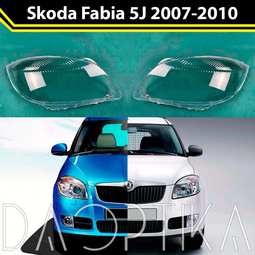 Стекло правой фары из оптического поликарбоната с защитным лаком для замены оригинального стекола фары на Skoda Roomster 2006-2010 1 поколение