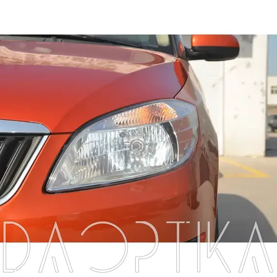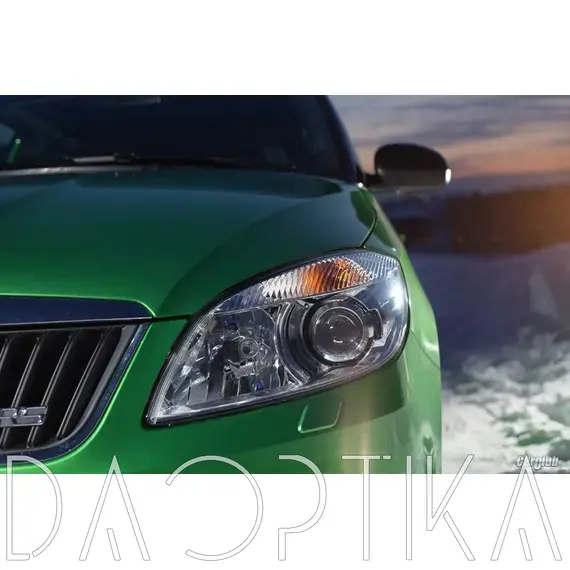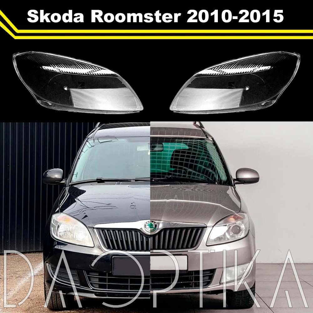 Стекло правой фары из оптического поликарбоната с защитным лаком для замены оригинального стекола фары на Skoda Roomster 2010-2015 1 поколение [рестайлинг]