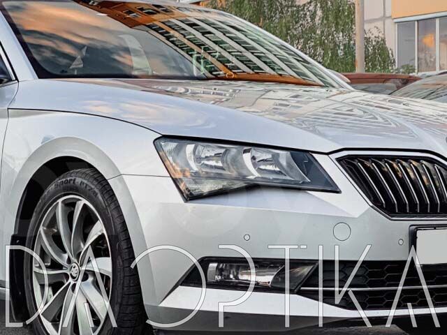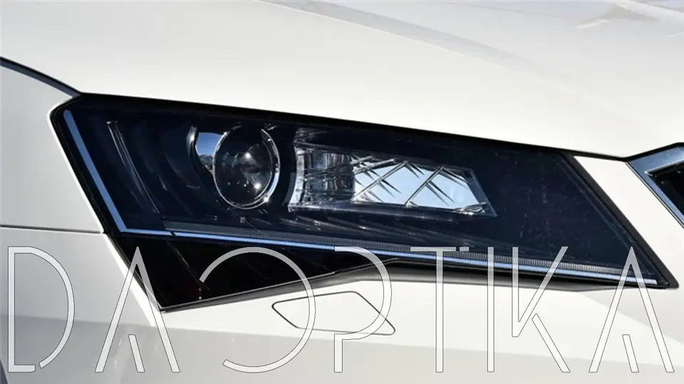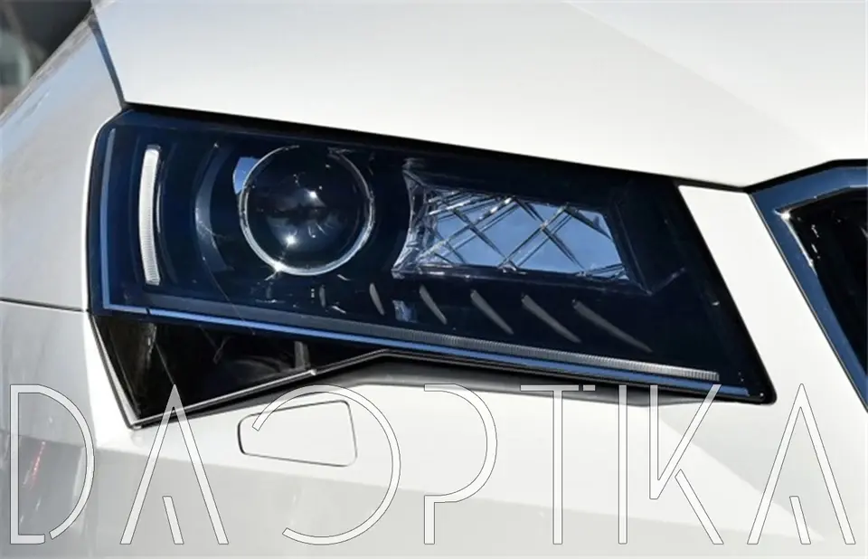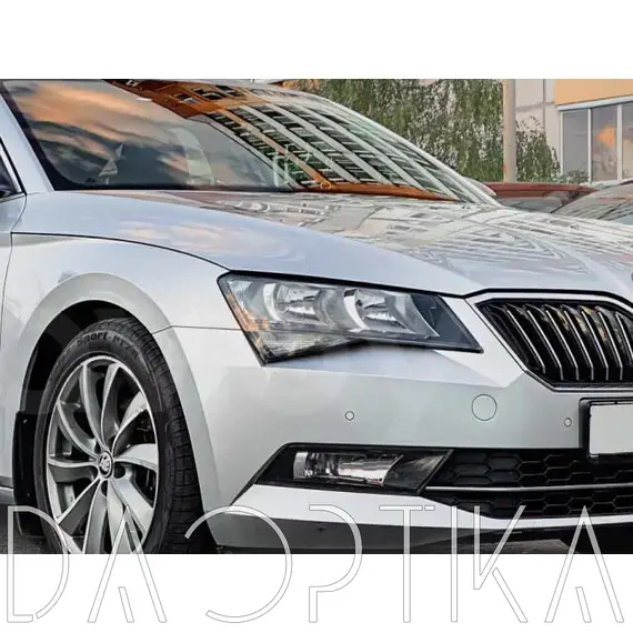Стекло правой фары из оптического поликарбоната с защитным лаком для замены оригинального стекола фары на Skoda Superb 2015-2019 3 поколение