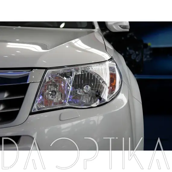 Стекло правой фары из оптического поликарбоната с защитным лаком для замены оригинального стекола фары на Subaru Forester 2007-2013 3 поколение
