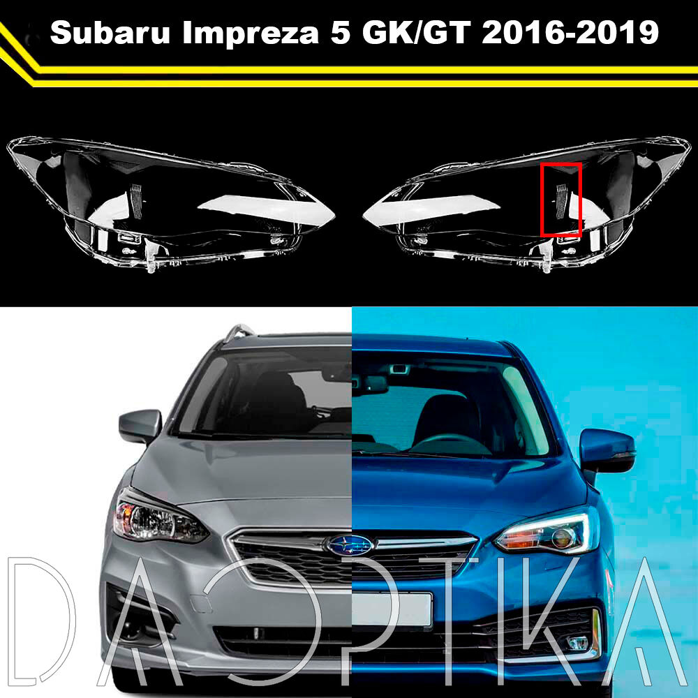 Стекло правой фары из оптического поликарбоната с защитным лаком для замены оригинального стекола фары на Subaru Impreza 2016-2019 5 поколение