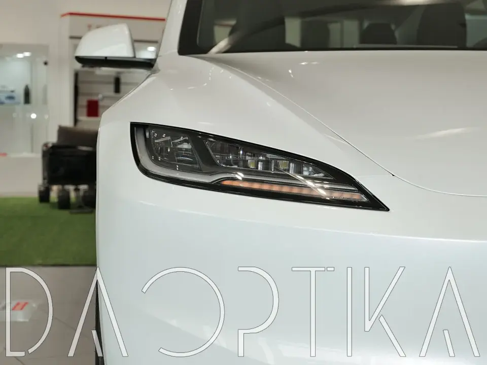 Стекло правой фары из оптического поликарбоната с защитным лаком для замены оригинального стекола фары на Tesla Model 3 2023-2026 1 поколение [рестайлинг]