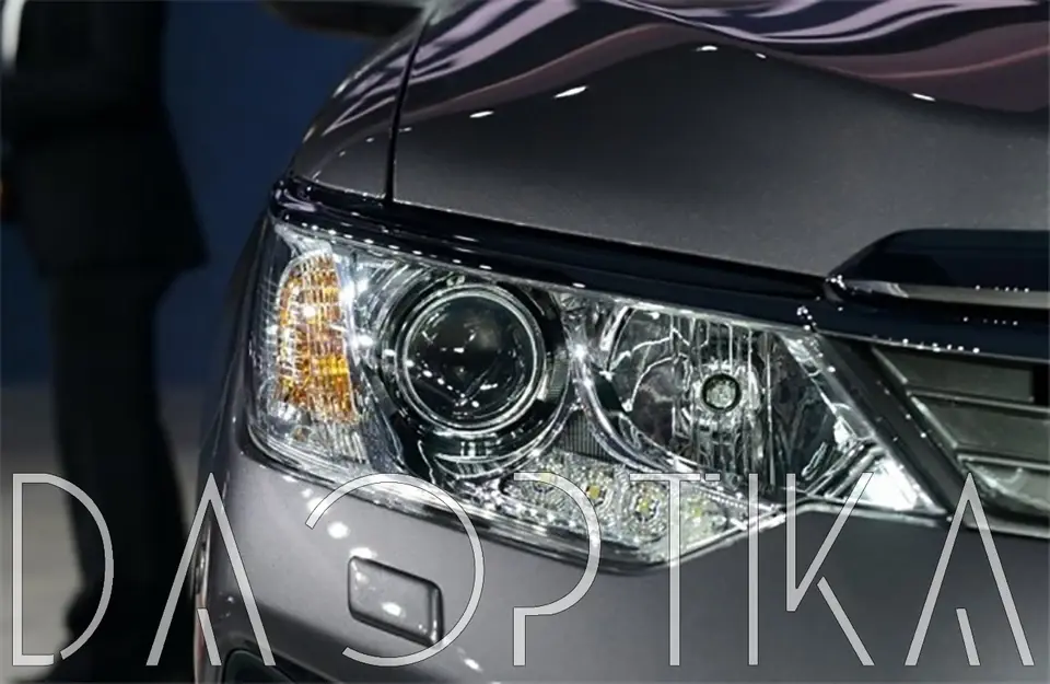 Стекло правой фары из оптического поликарбоната с защитным лаком для замены оригинального стекола фары на Toyota Camry 2014-2018 XV50 [рестайлинг]