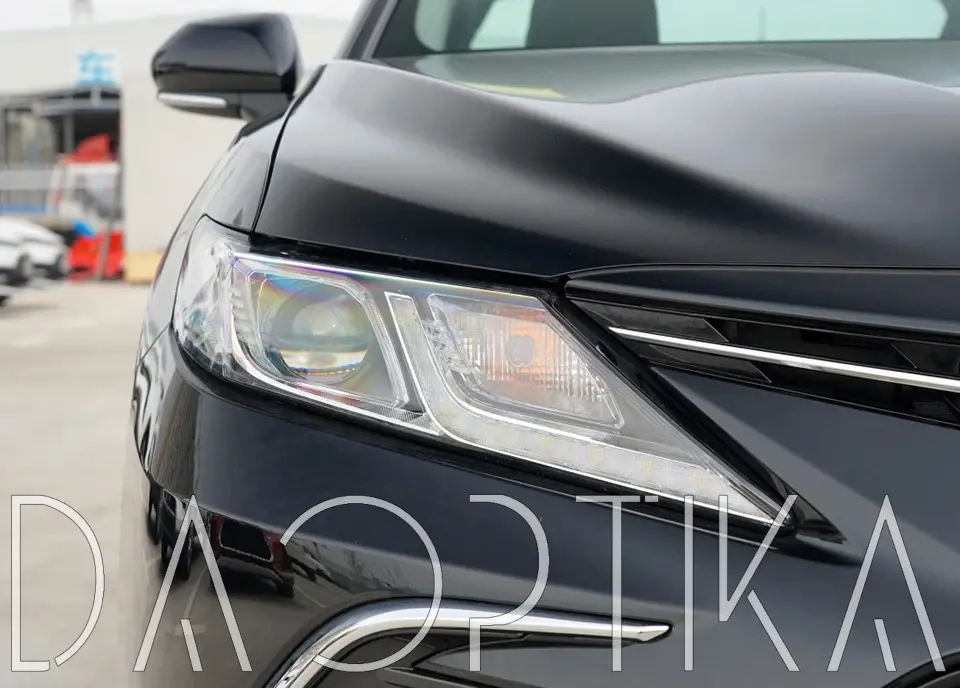 Стекло правой фары из оптического поликарбоната с защитным лаком для замены оригинального стекола фары на Toyota Camry 2017-2024 XV70