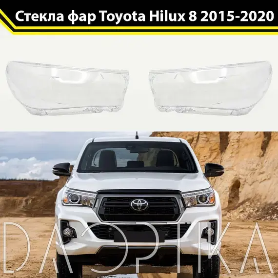 Стекло правой фары из оптического поликарбоната с защитным лаком для замены оригинального стекола фары на Toyota Hilux 2015-2020 8 поколение
