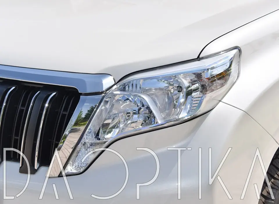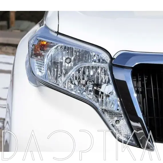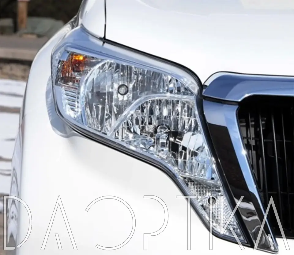 Стекло правой фары из оптического поликарбоната с защитным лаком для замены оригинального стекола фары на Toyota Land Cruiser Prado 2013-2017 J150 [рестайлинг]