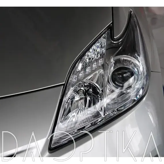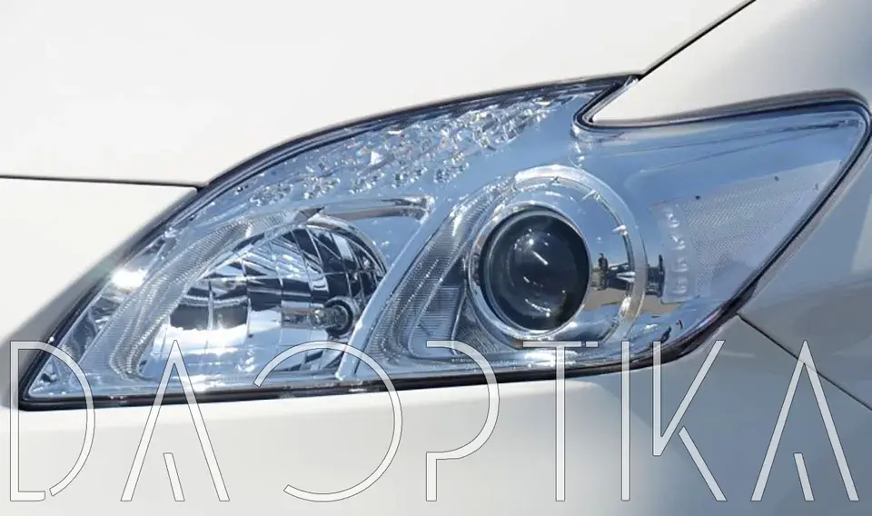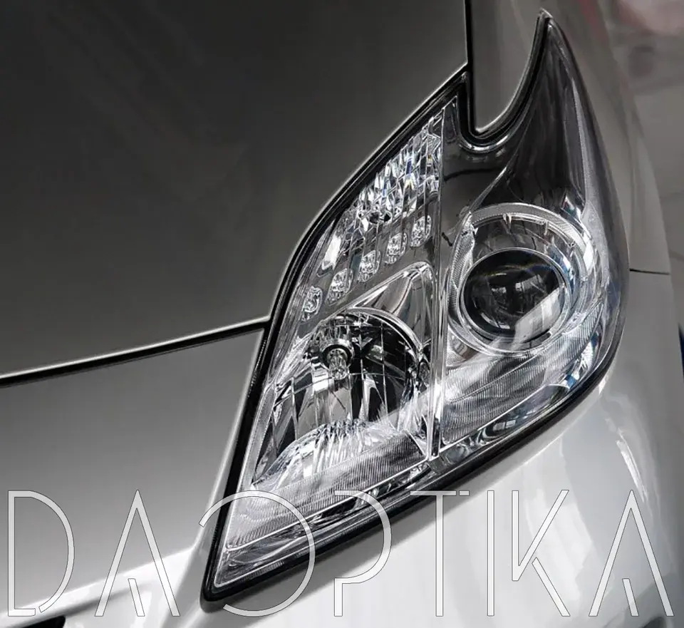 Стекло правой фары из оптического поликарбоната с защитным лаком для замены оригинального стекола фары на Toyota Prius 2009-2011 XW30 3 поколение