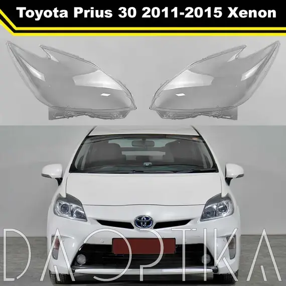 Стекло правой фары из оптического поликарбоната с защитным лаком для замены оригинального стекола фары на Toyota Prius 2011-2015 XW30 3 поколение [рестайлинг]
