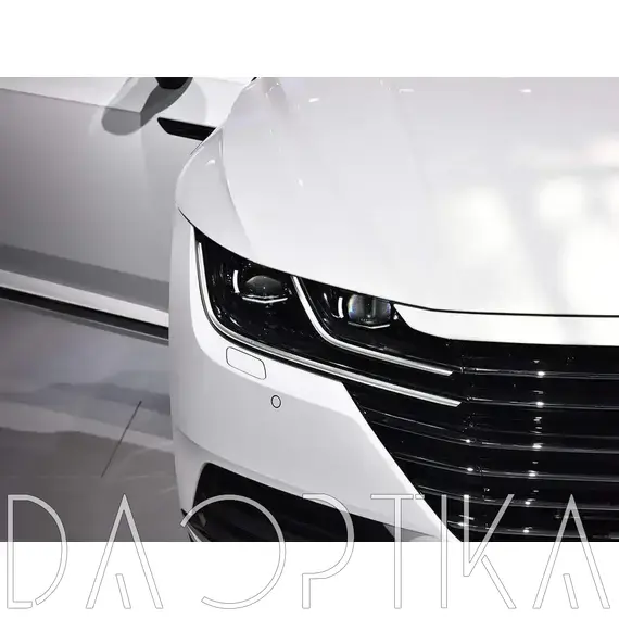 Стекло правой фары из оптического поликарбоната с защитным лаком для замены оригинального стекола фары на Volkswagen Arteon 2017-2020 1 поколение