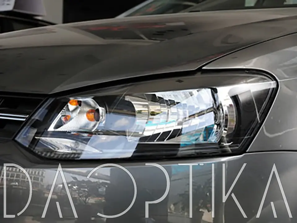 Стекло правой фары из оптического поликарбоната с защитным лаком для замены оригинального стекола фары на Volkswagen Polo 2009-2015 5 поколение
